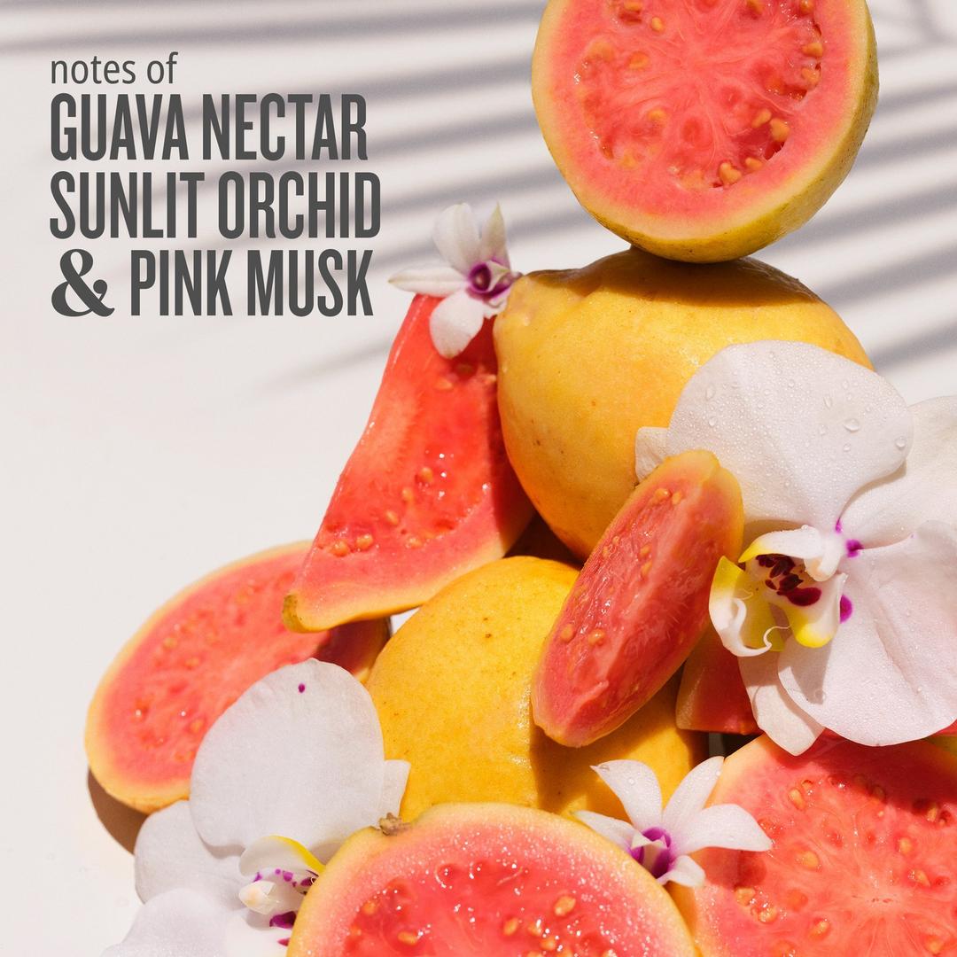 - This succulent fragrance opens with a ripe twist of guava nectar, while sunlit orchid blooms under a dreamy vanilla and pink musk cloud.