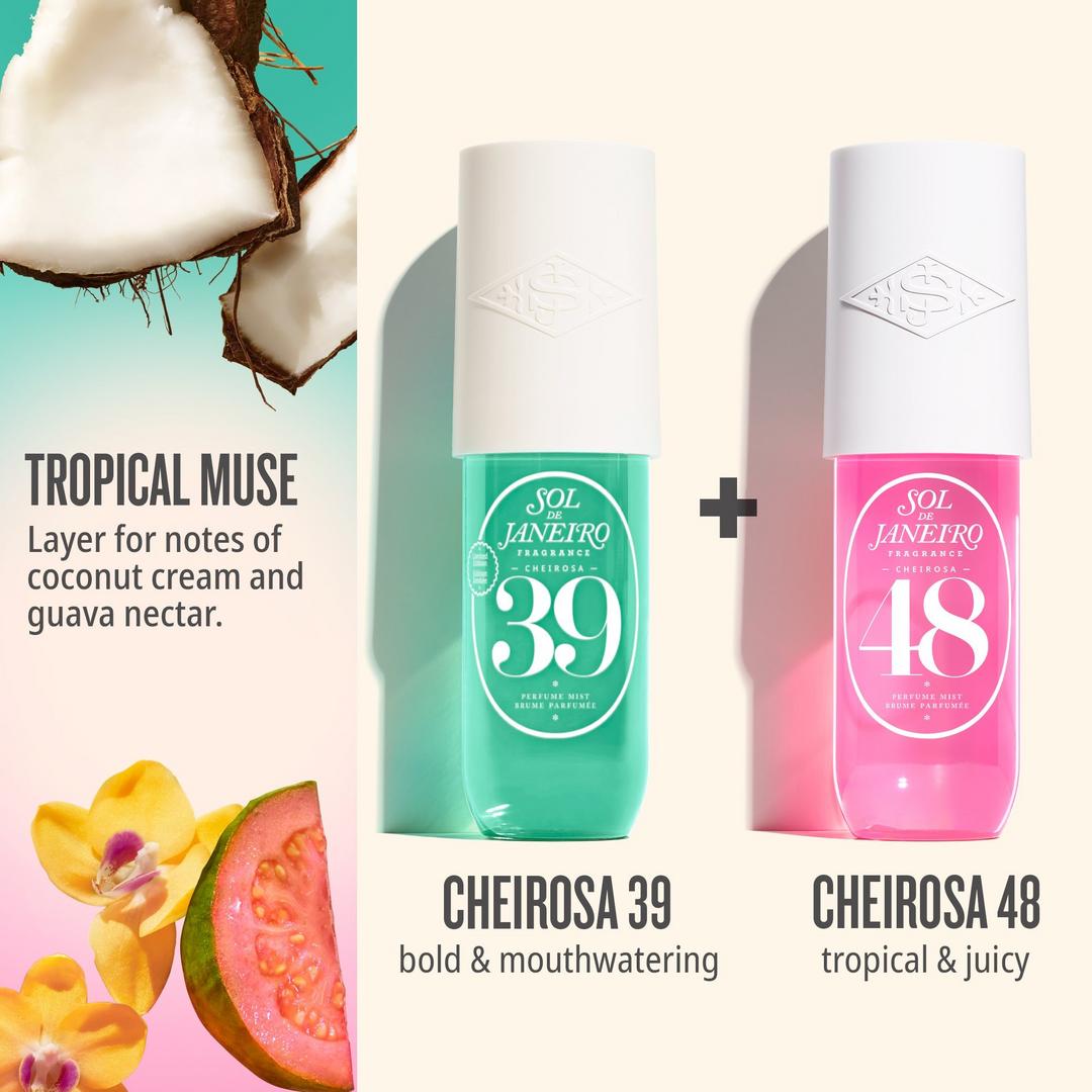 Sol de Janeiro’s Cheirosa 48 Hair & Body Perfume Mist is a fruity gourmand hair and body fragrance with a tropical and juicy scent. Feel the rush of bikini season.